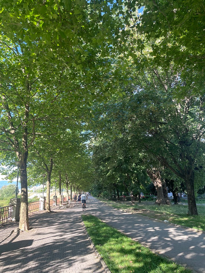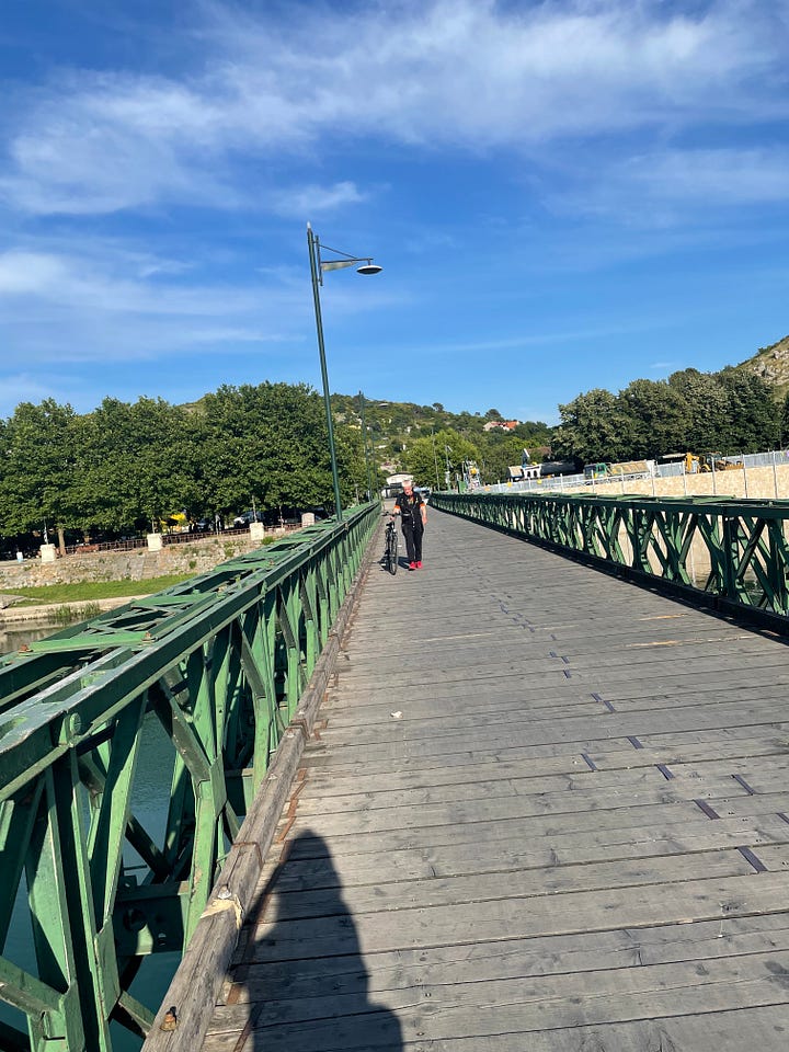 The town center feels too touristy to me—bad music, hustlers, and trinkets—so I head the other direction, where I find a park. AH! How quaint is this? I cross a bridge. All I’m missing is a baguette in the basket even though Albanians don’t bake them.