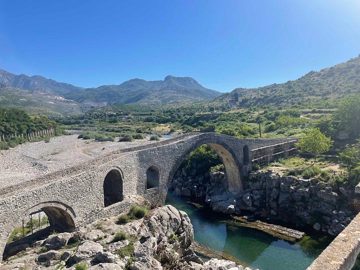 That I had to stumble upon the Mesi Bridge rather than plan to see the bridge is a little embarrassing. To be fair, in The Peaks of Shala, the caption for the photo reads “The Keri Bridge.” Also, Shokdër was then the “citadel of Scutari.” But I found the bridge anyway.