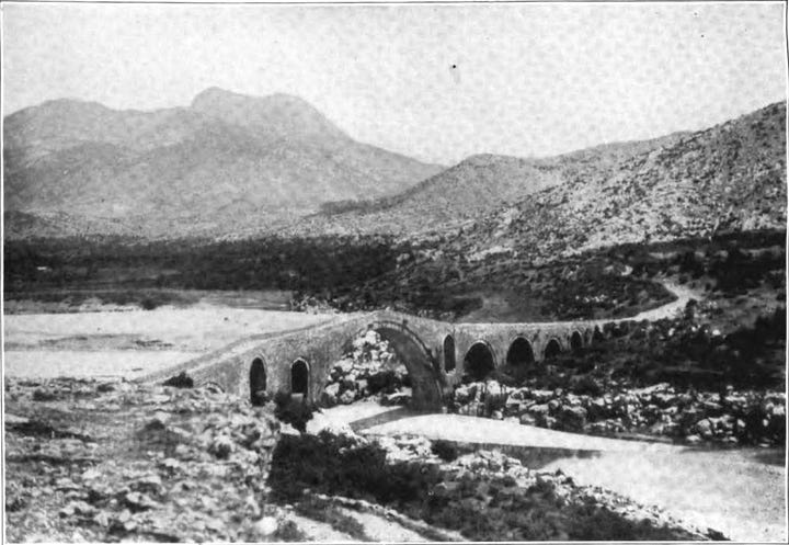 Then I see what I really came to see although I didn’t know it until this instant: a familiar-looking bridge. Instantly I know it’s the same bridge I’ve seen many times in The Peaks of Shala (Rose’s travelogue of her crossing the Albanian Alps). This Ottoman bridge, of all the Ottoman bridges, is special for me because it’s the same bridge Rose Wilder Lane crossed 100 years ago.