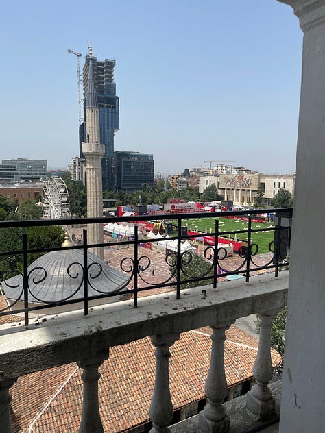 In Rose’s time, the tower would have been the tallest structure in Tirana, a skyline now eclipsed by highrises sprouting like invasive, alien asparagus.